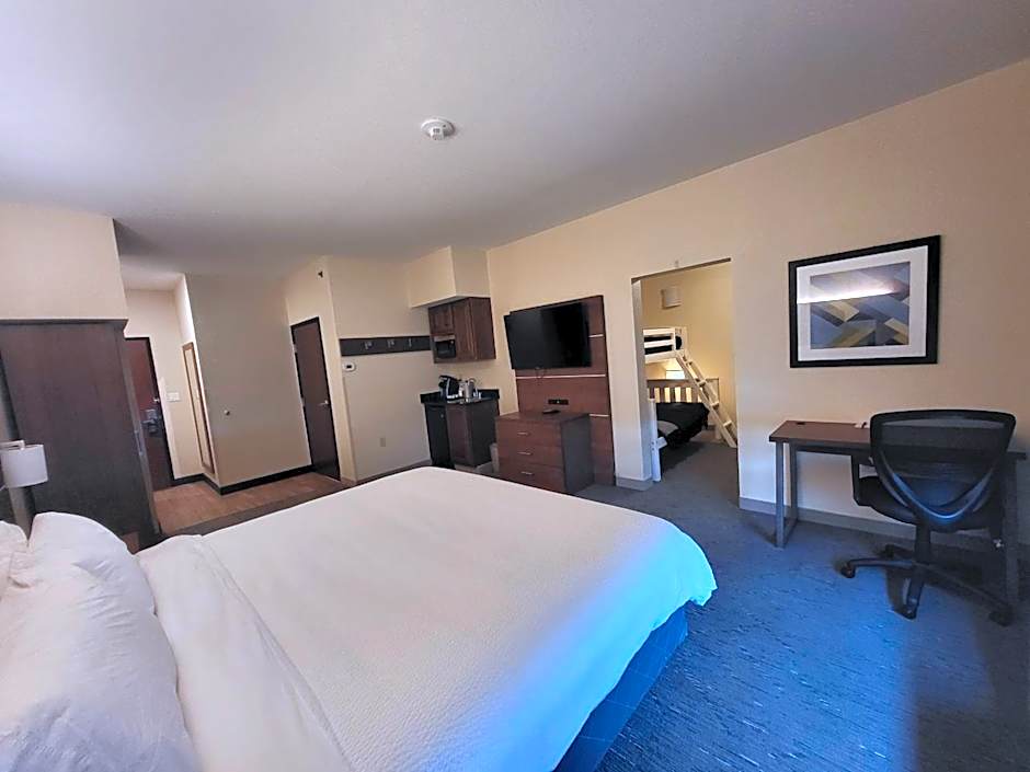 The suite is furnished with a desk and a seating area and features a tea and coffee maker and a safe deposit box. The unit has 2 beds.